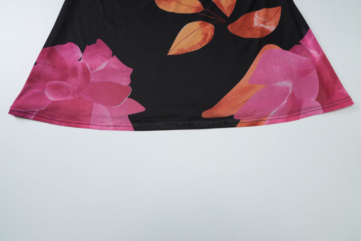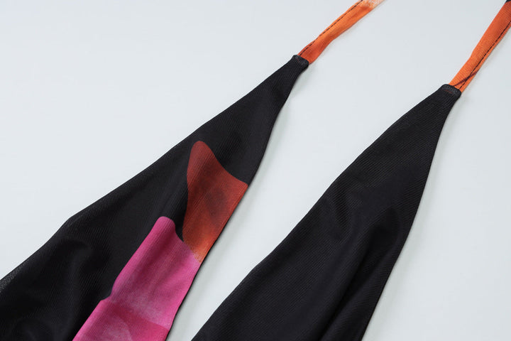 Self tie halter print cowl neck mesh maxi dress