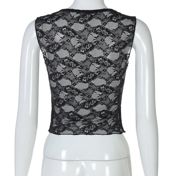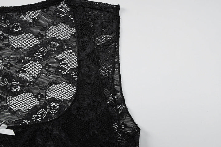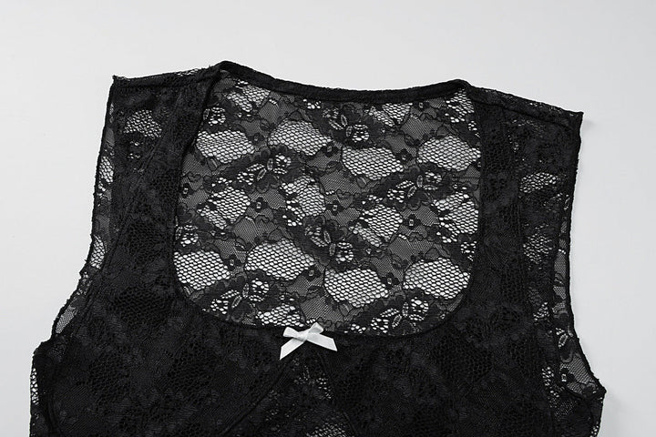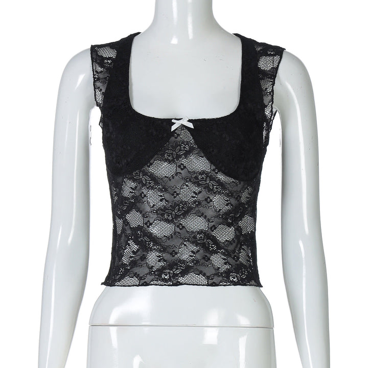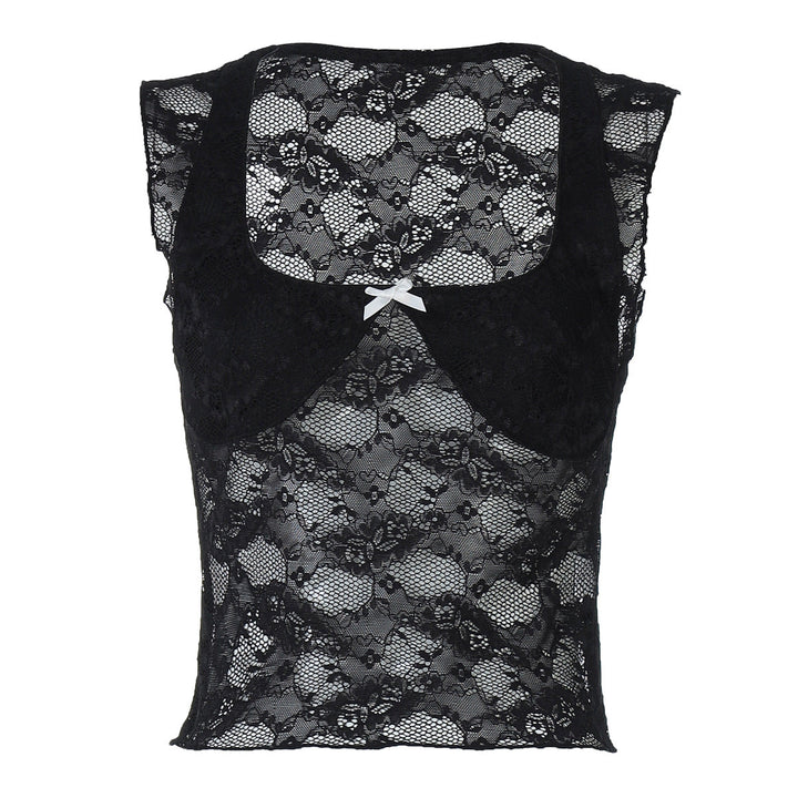 Square neck bowknot lace tank top