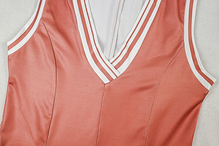 V neck sleeveless contrast mini dress