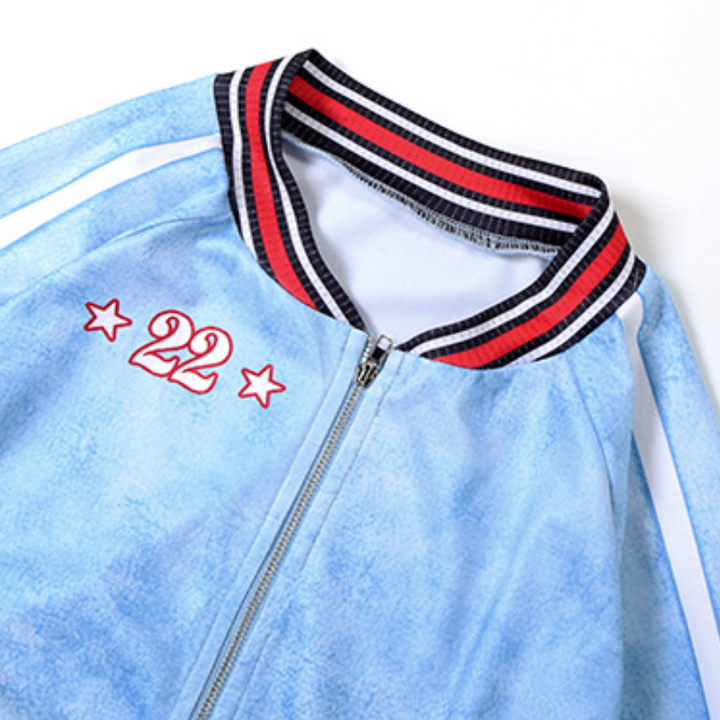 Zip-up long sleeve pocket "22" pattern pant set