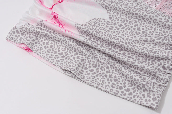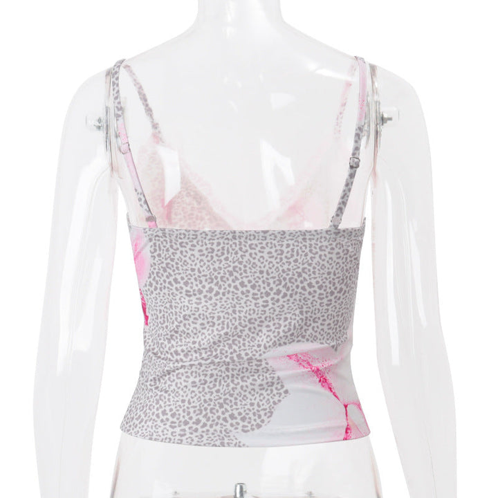 Flower print v neck lace hem bowknot cami top