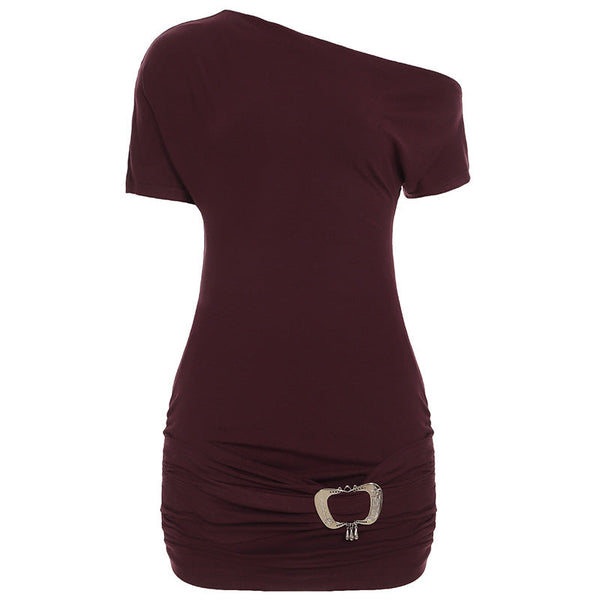半袖ワンショルダーシャーリング無地ミニドレス