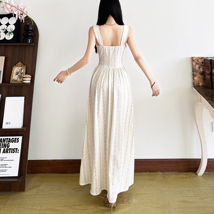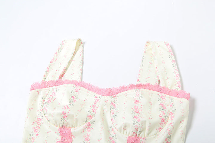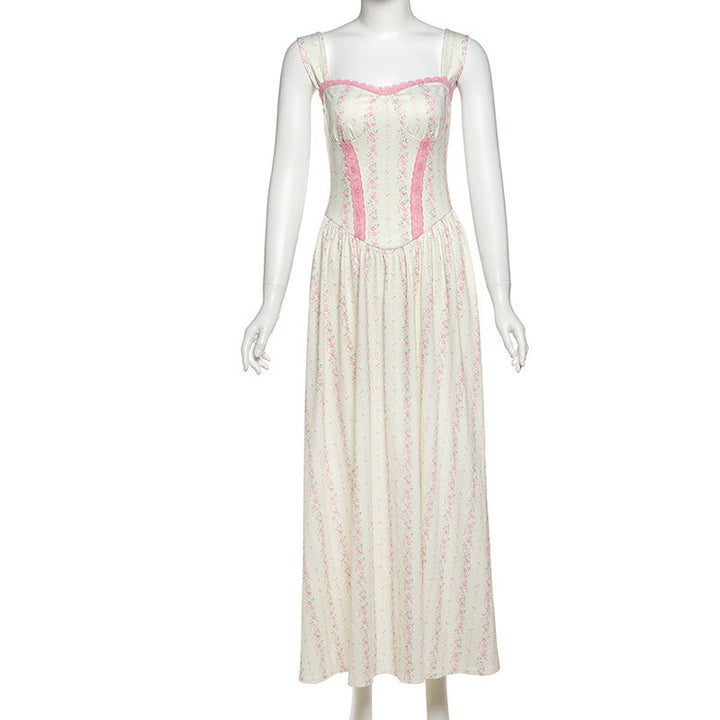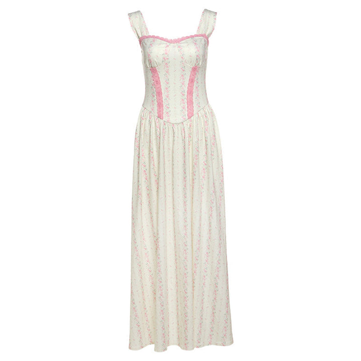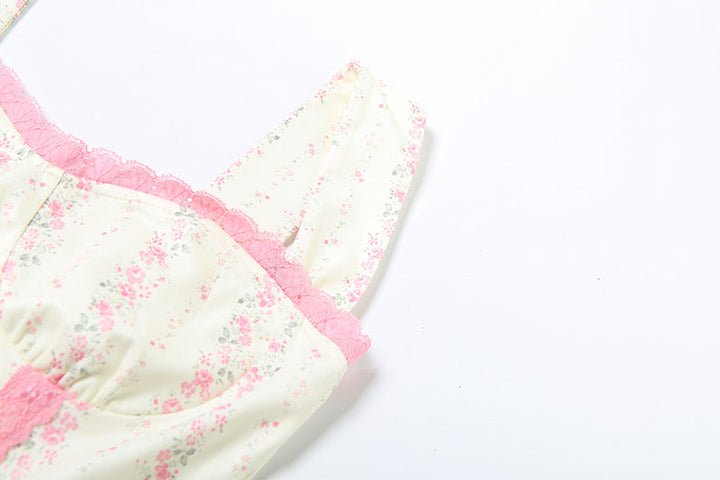Flower print lace hem maxi dress