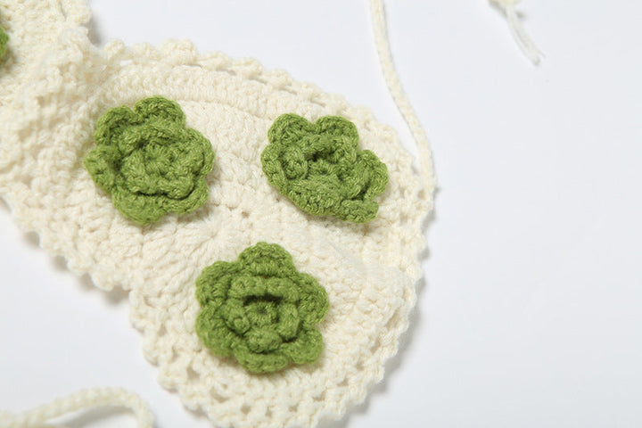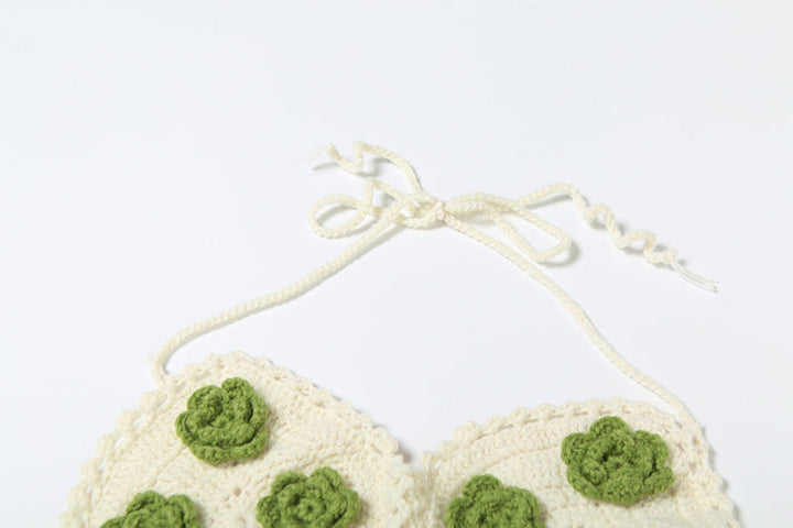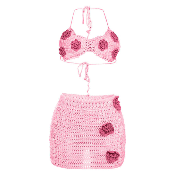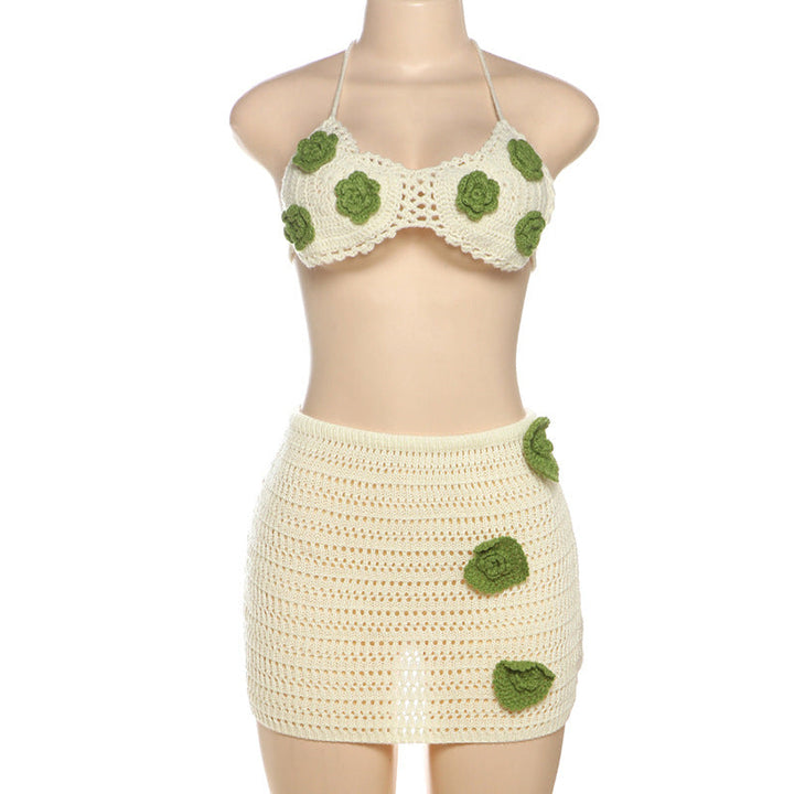 Halter self tie flower applique mini skirt set