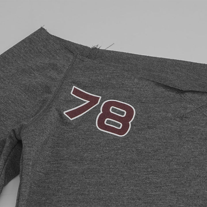 Long sleeve off shoulder letter pattern top