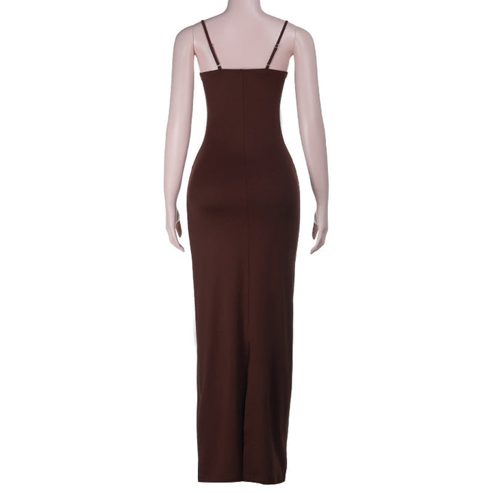 V neck backless solid cami maxi dress