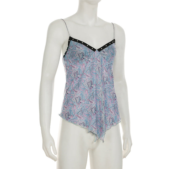 V neck contrast mesh cami top