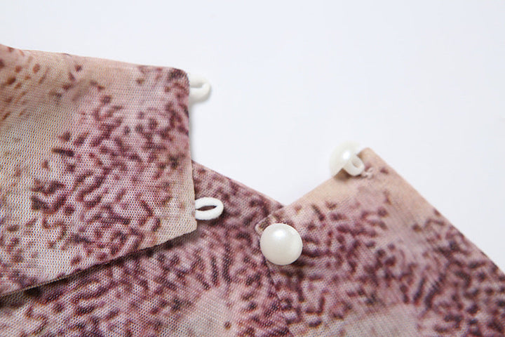 Button mesh halter print self tie top