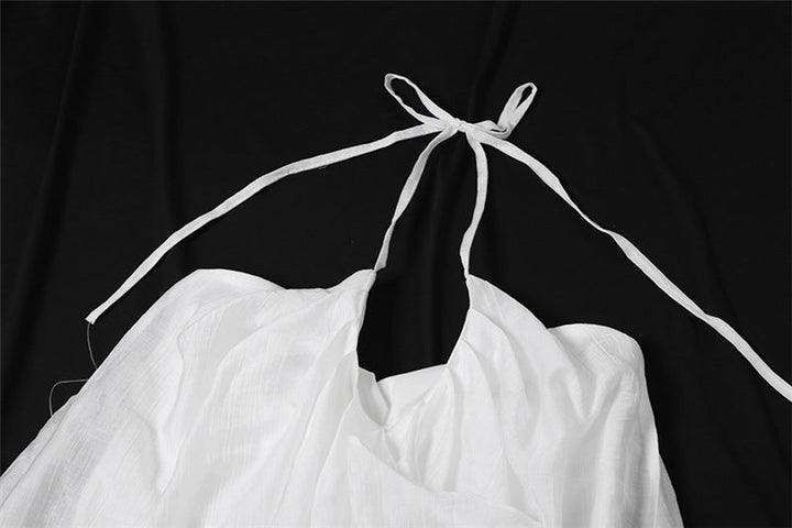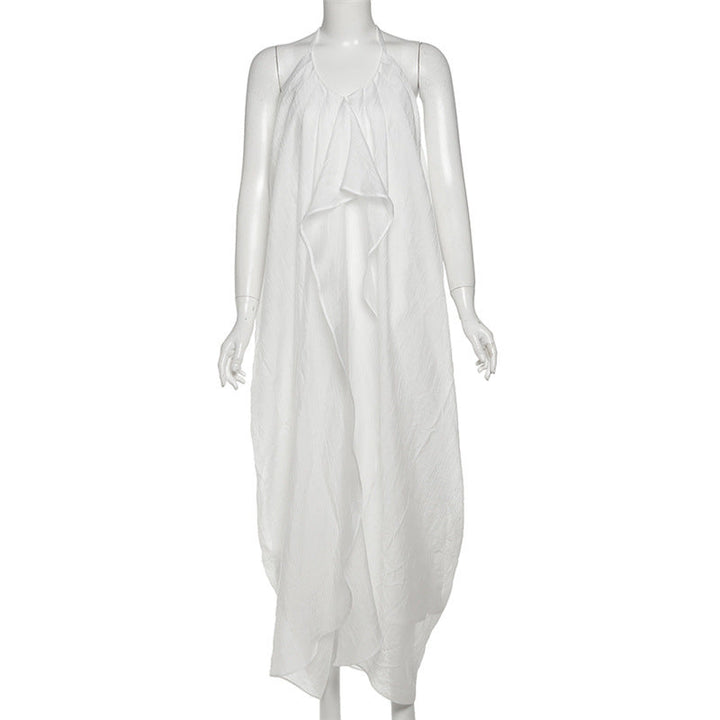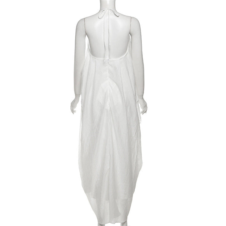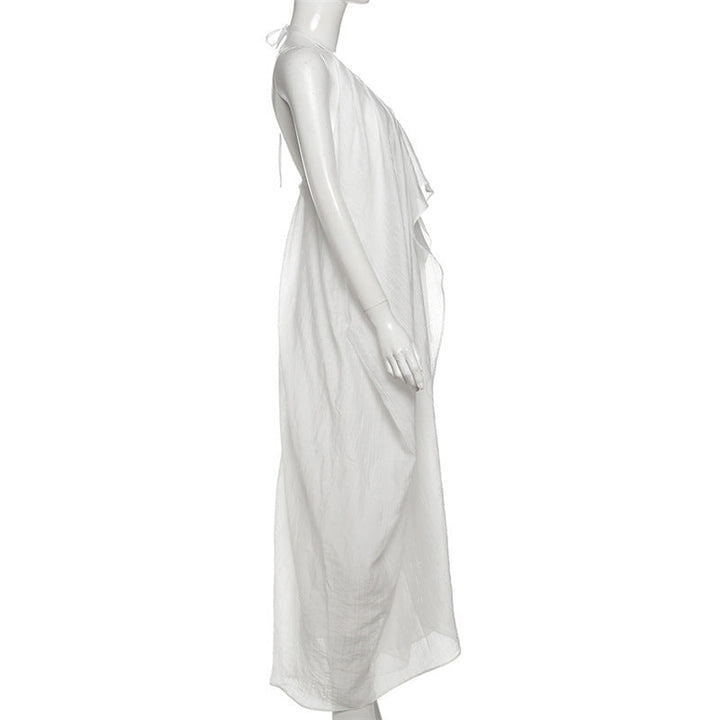 Halter self tie v neck zip-up irregular maxi dress
