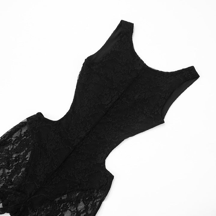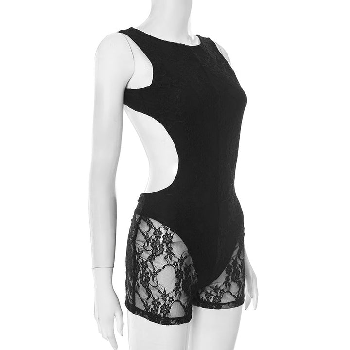 Hollow out lace backless romper