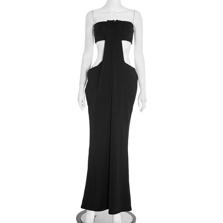 Hollow out ruched solid maxi dress