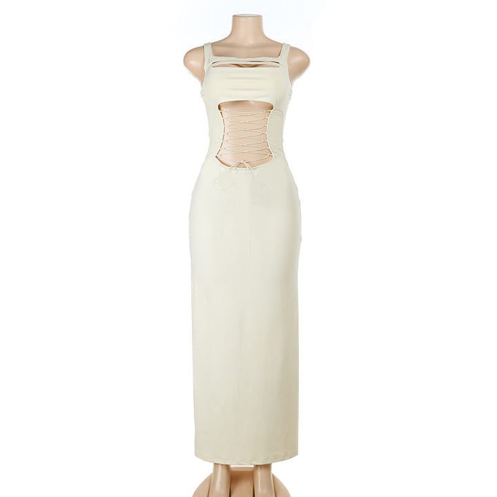 Hollow out square neck lace up cami maxi dress