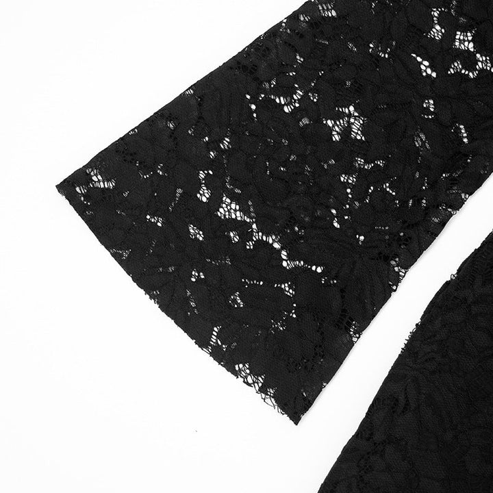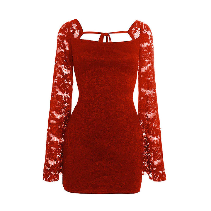 Long sleeve lace square neck self tie mini dress