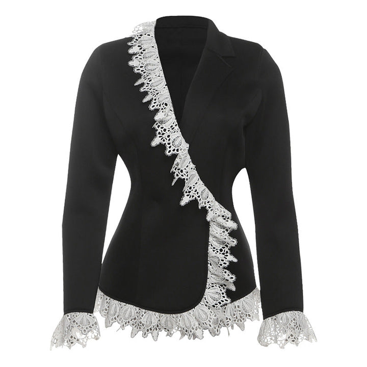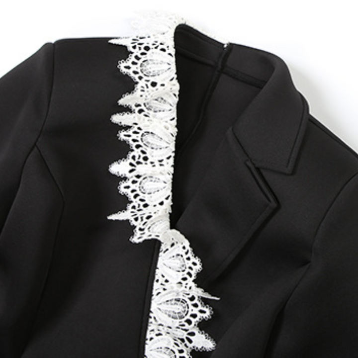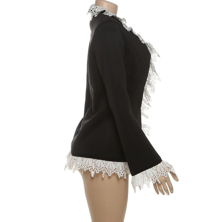 Long sleeve turnover collar lace hem button top