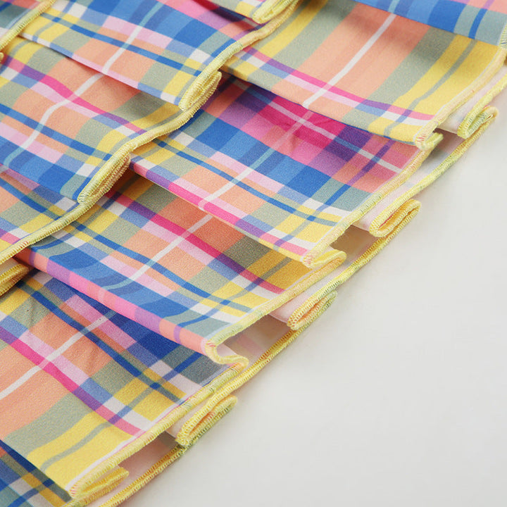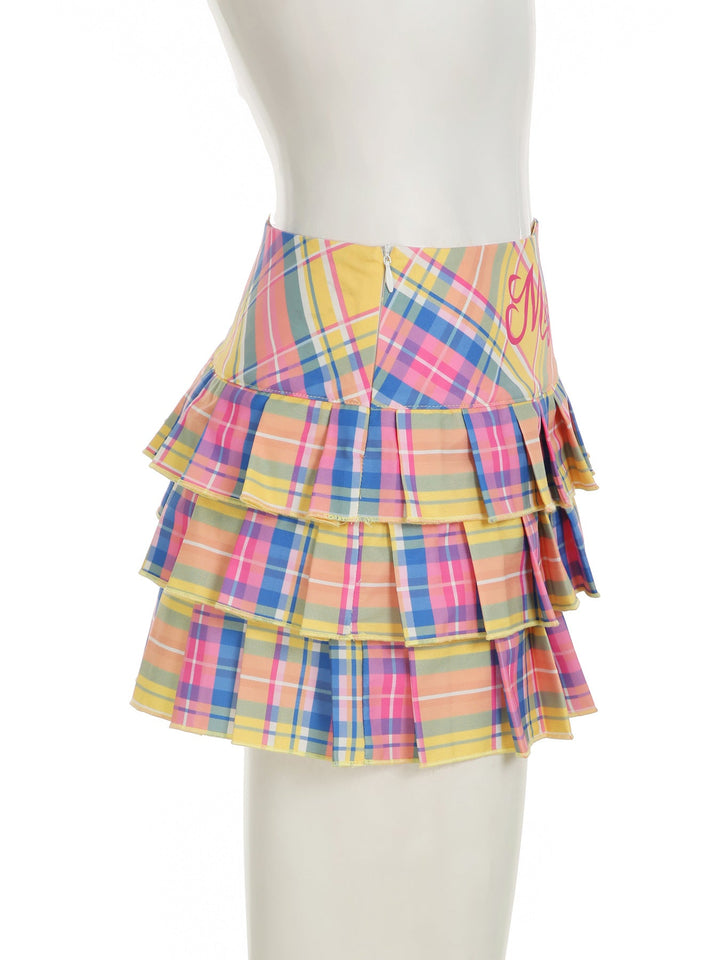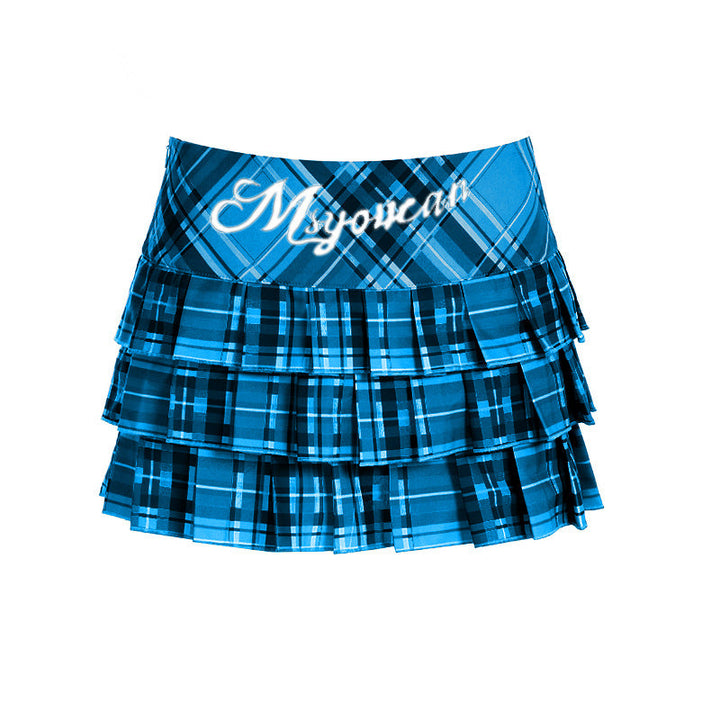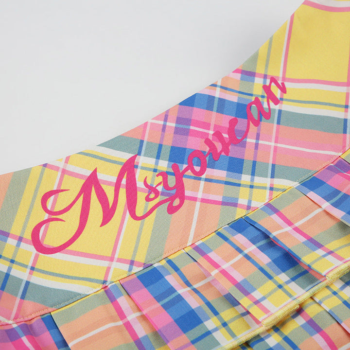 Pleated plaid zip-up letter pattern A line mini skirt