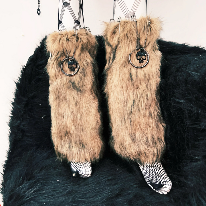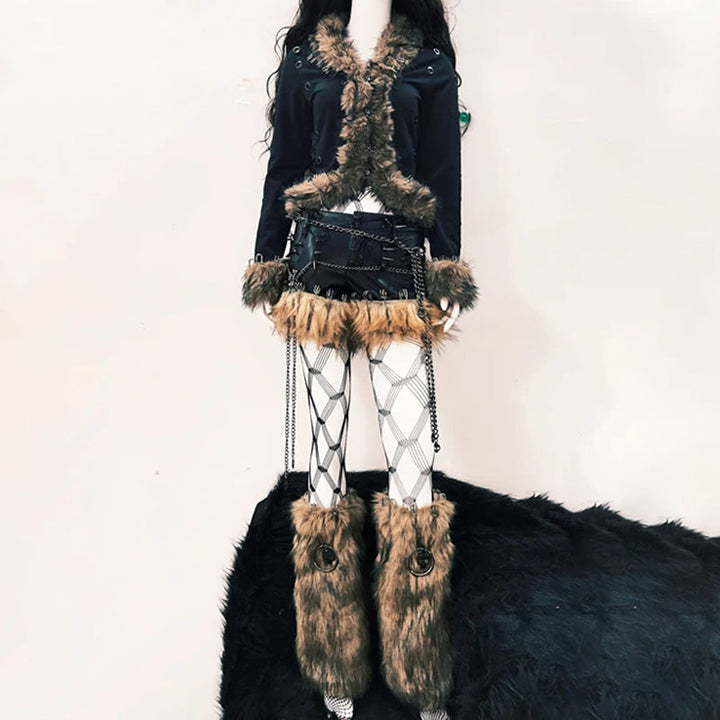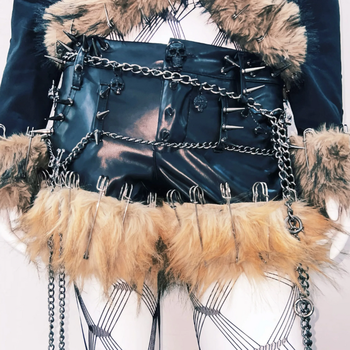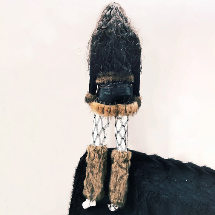 Fluffy long sleeve skull applique hollow out top