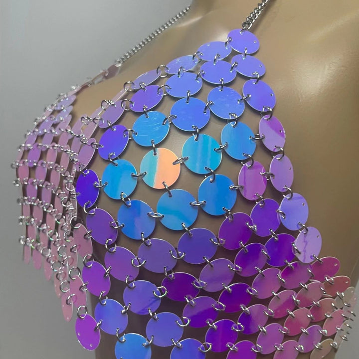 Halter glitter hollow out metal chain top
