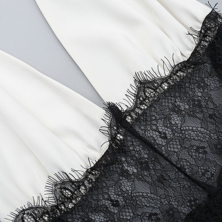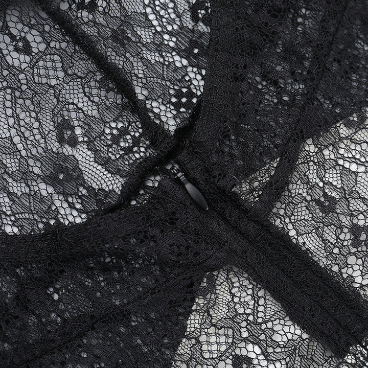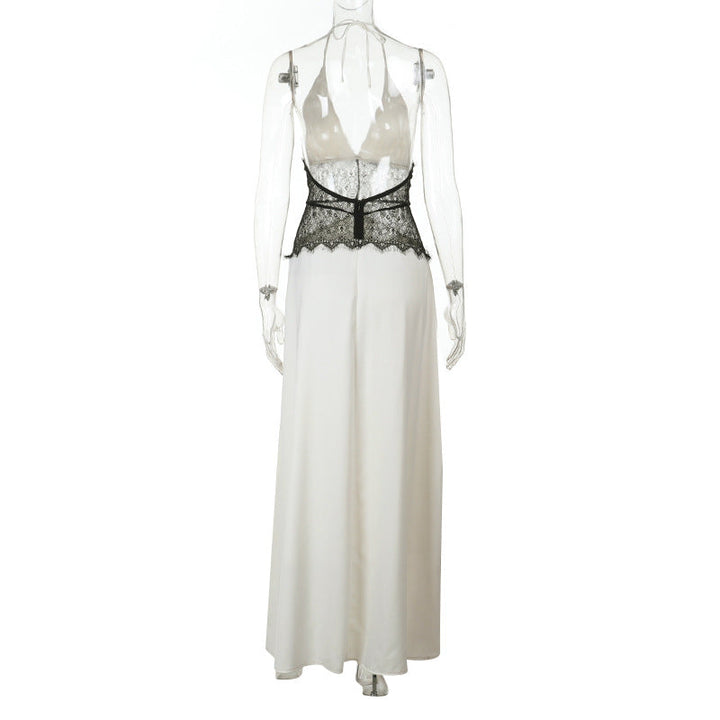 Halter self tie v neck lace hem zip-up maxi dress