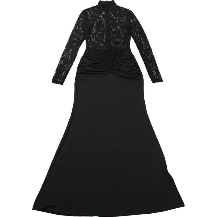 High neck long sleeve zip-up ruched maxi dress