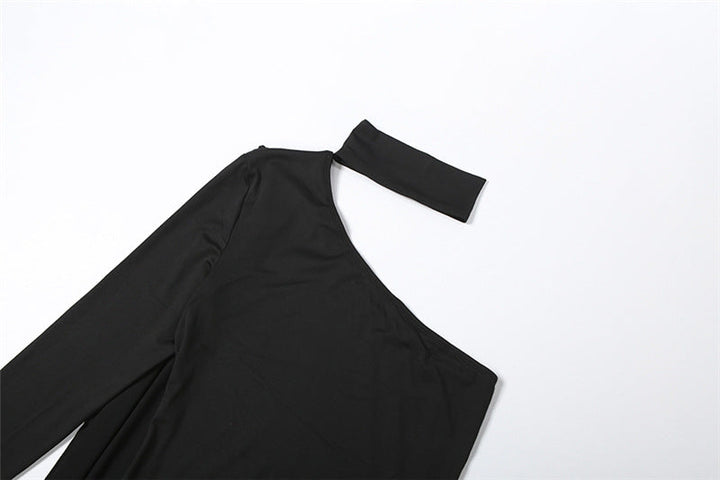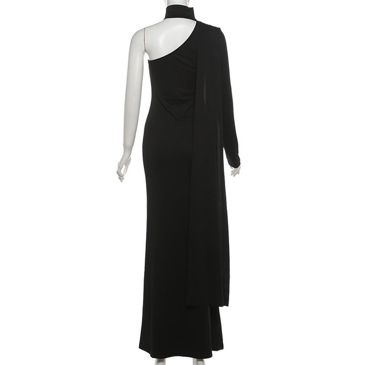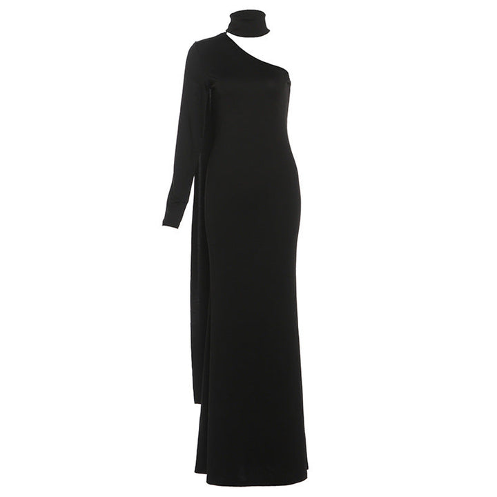 High neck one shoulder solid maxi dress