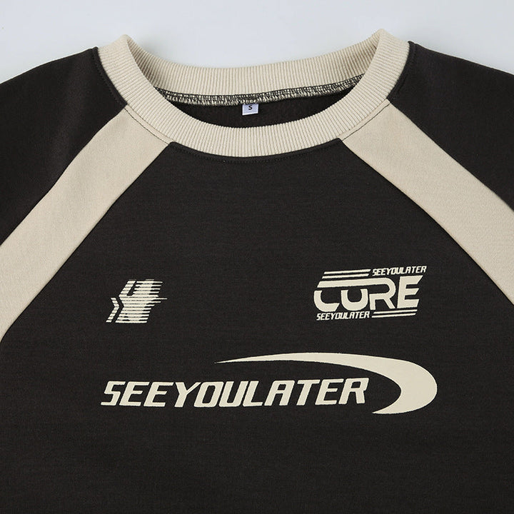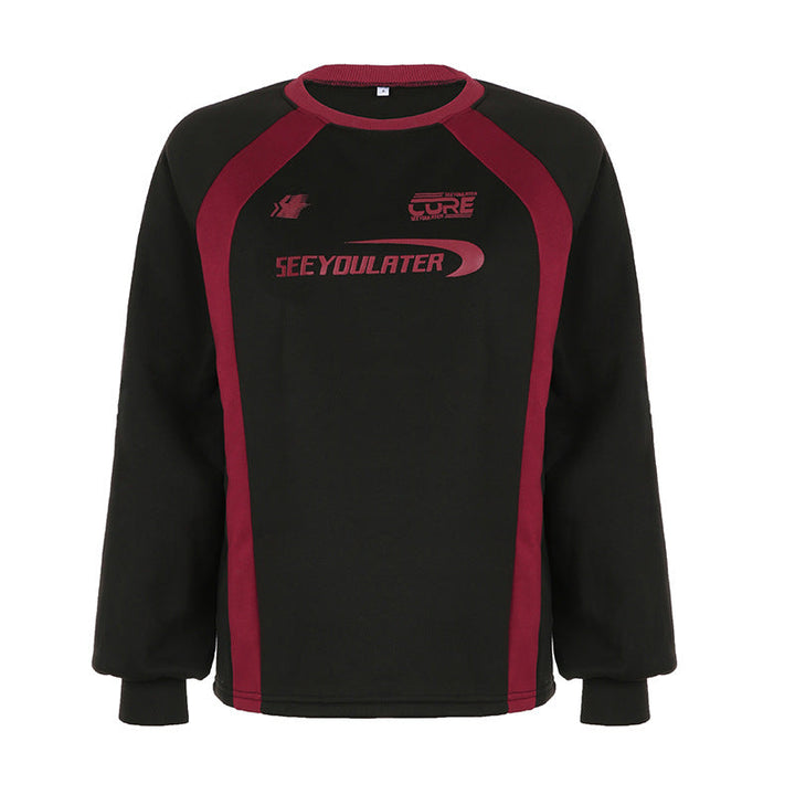 Long sleeve crewneck letter pattern contrast top