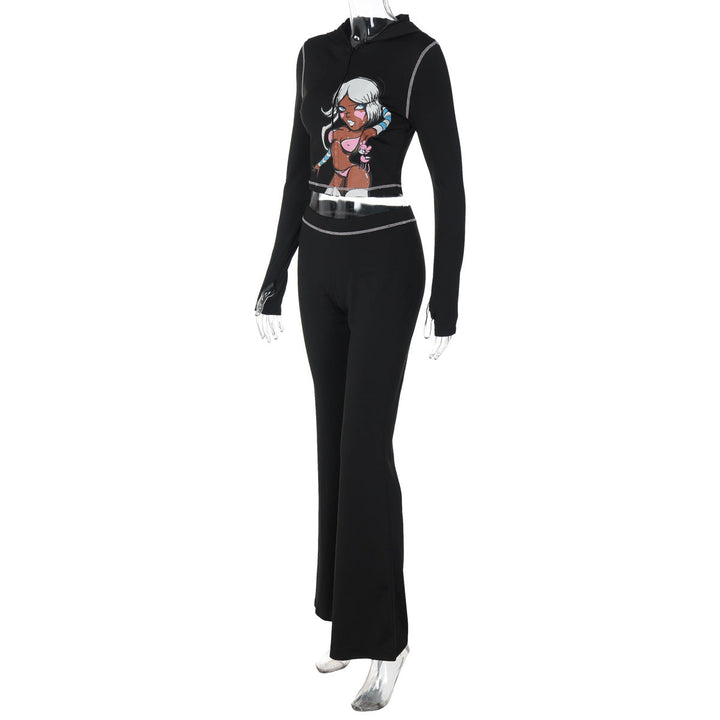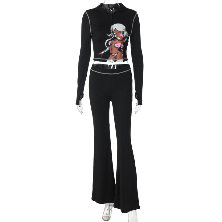Long sleeve hoodie pattern zip-up pant set