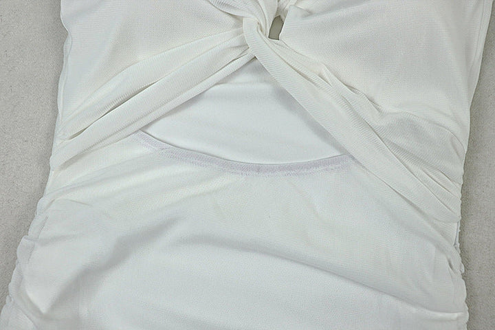 Long sleeve off shoulder halter hollow out mesh maxi dress