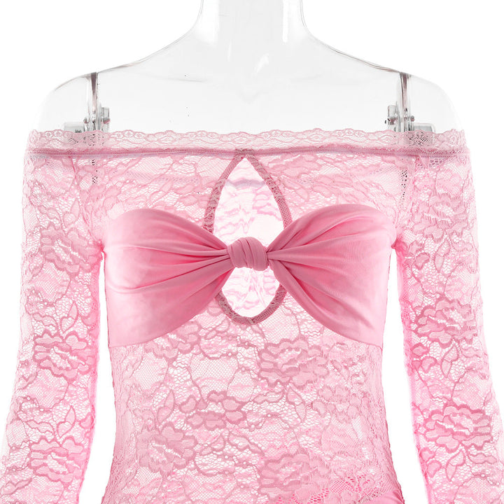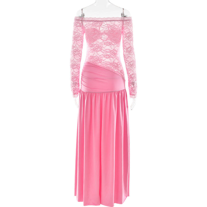 Long sleeve off shoulder hollow out lace slit maxi dress