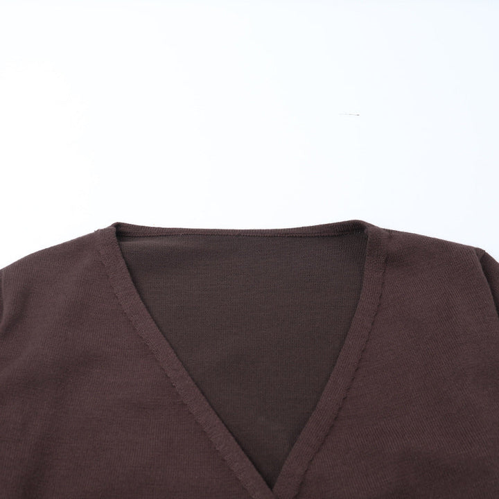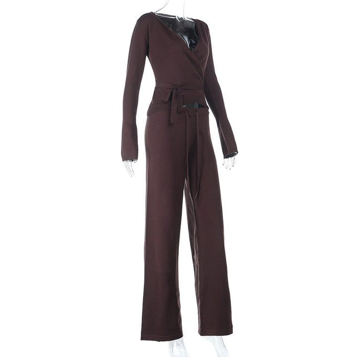 Long sleeve v neck self tie drawstring pant set
