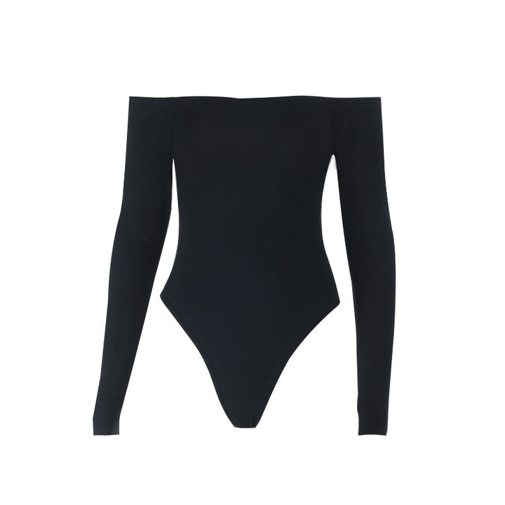 Off shoulder long sleeve hollow out solid bodysuit
