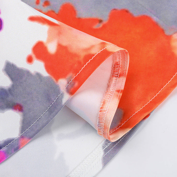 Pleated v neck self tie print cami mini dress
