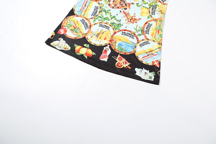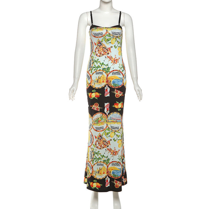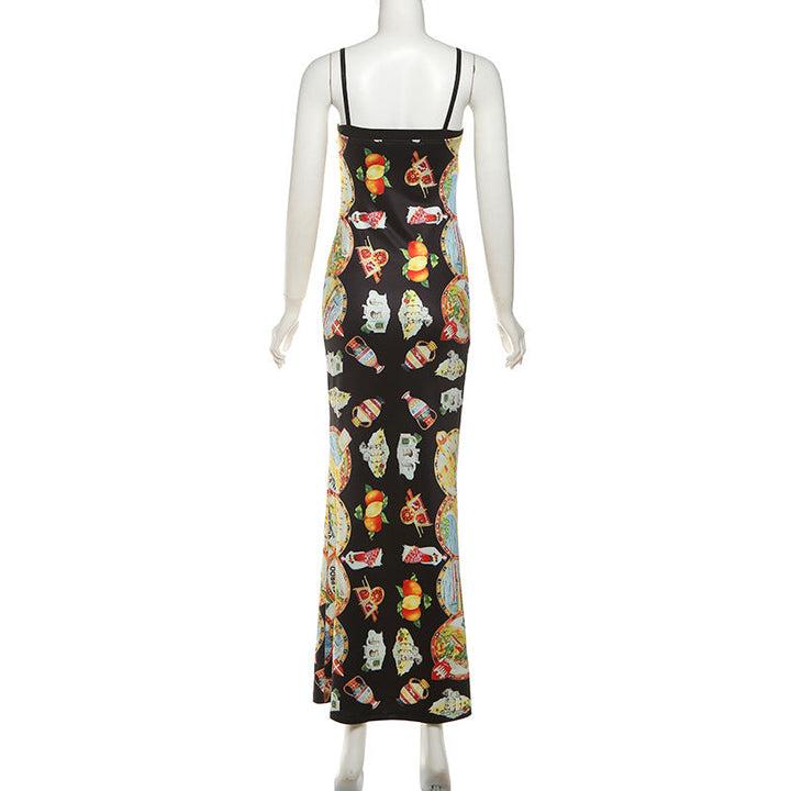 Print contrast backless cami maxi dress