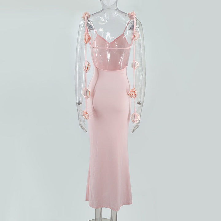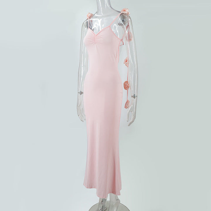 Ruched flower applique v neck cami maxi dress