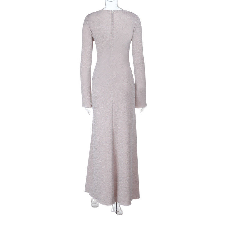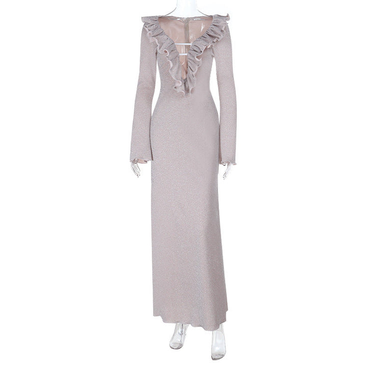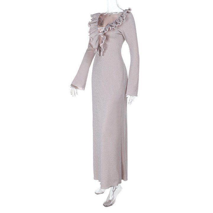 Ruffle long sleeve zip-up v neck maxi dress
