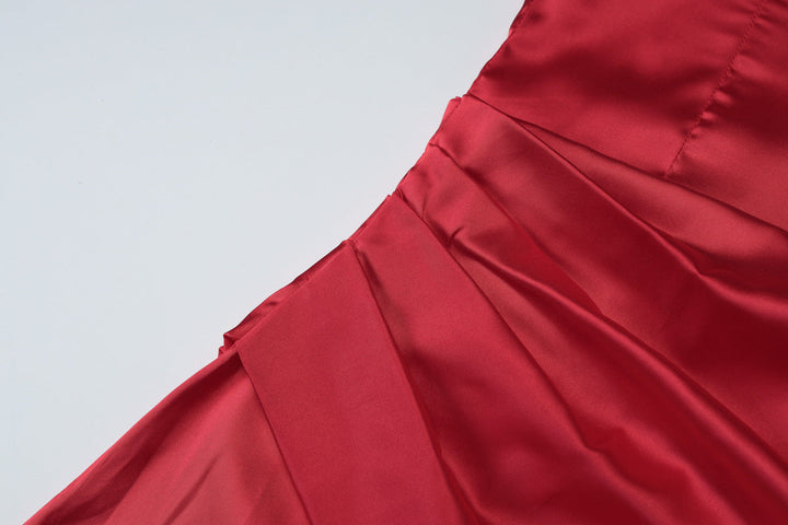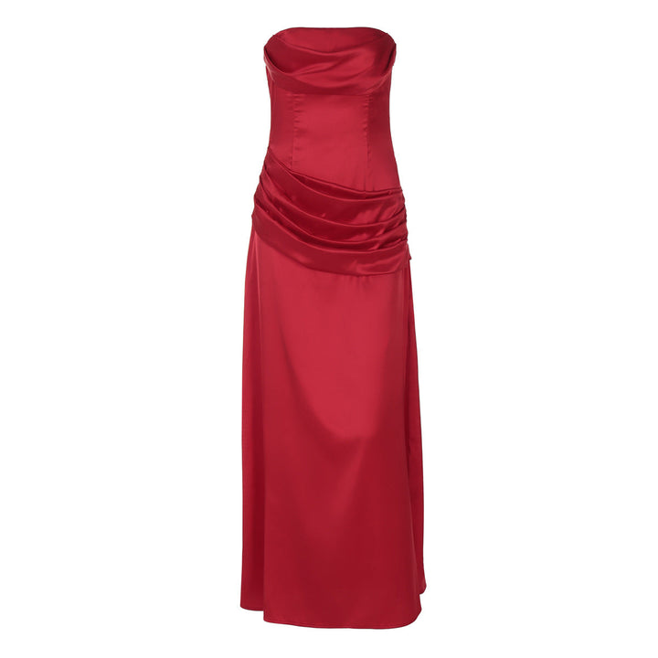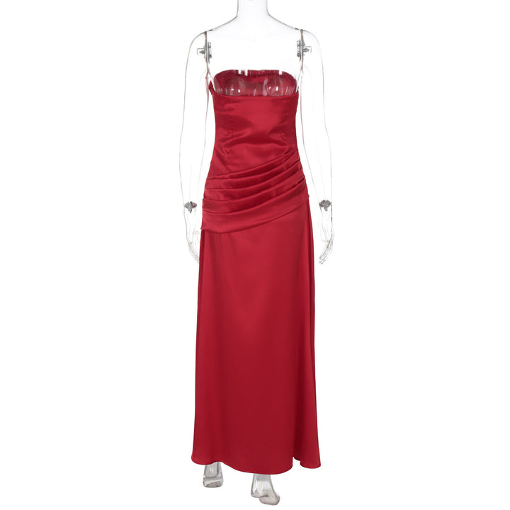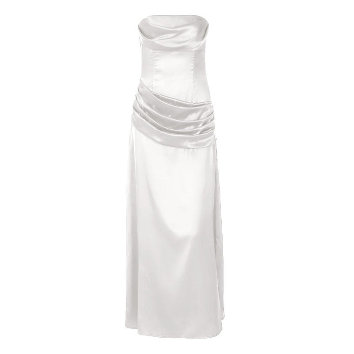 Satin pleated zip-up solid tube maxi dress