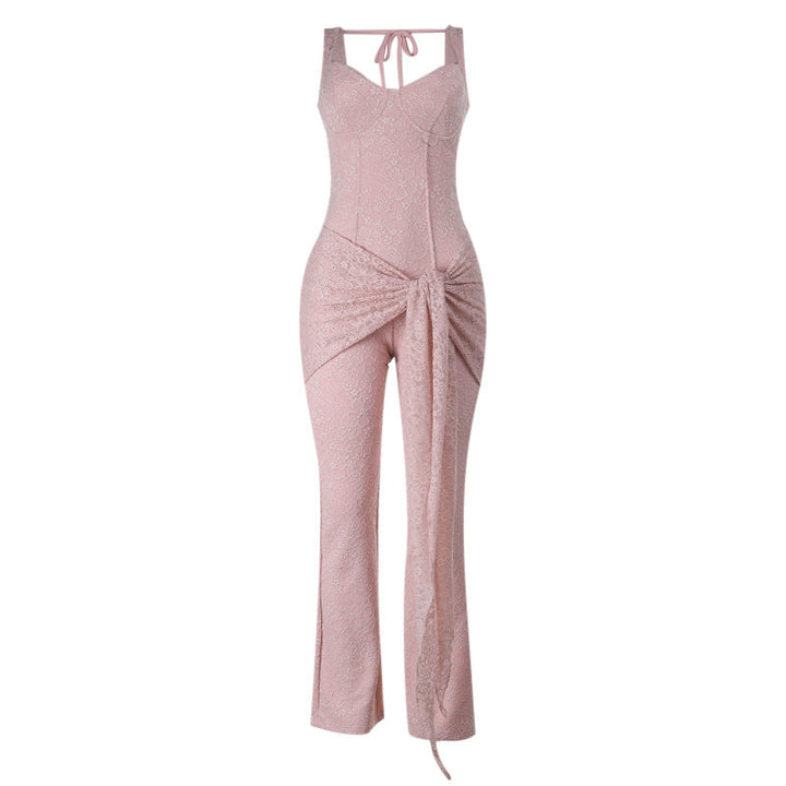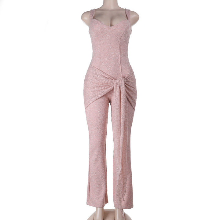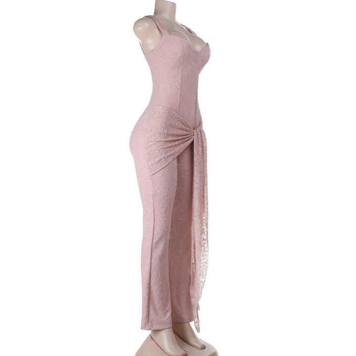 Self tie v neck zip-up lace v neck cami jumpsuit