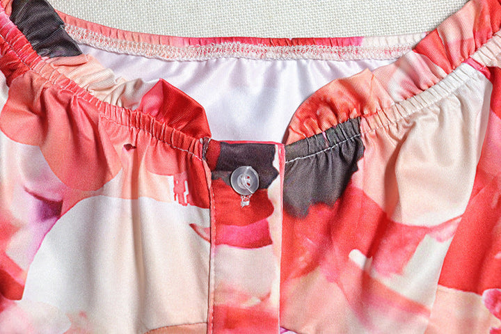 Short sleeve v neck flower print button maxi dress