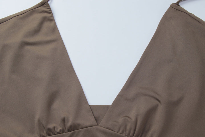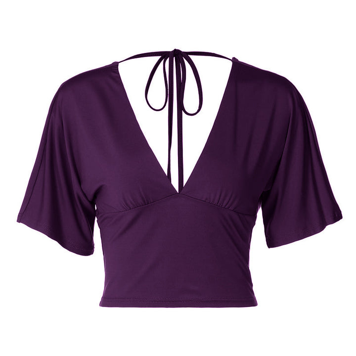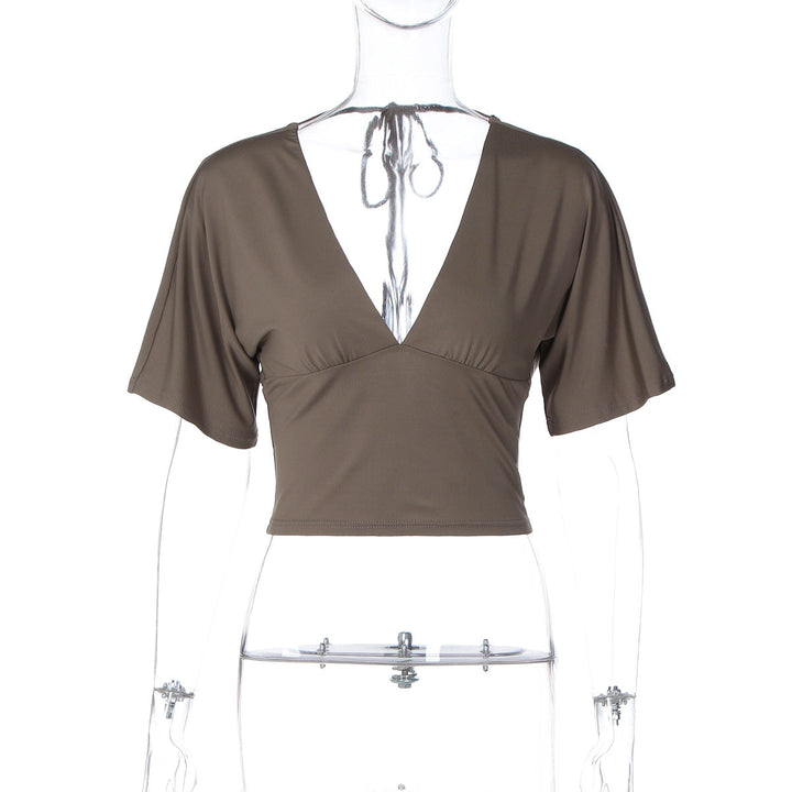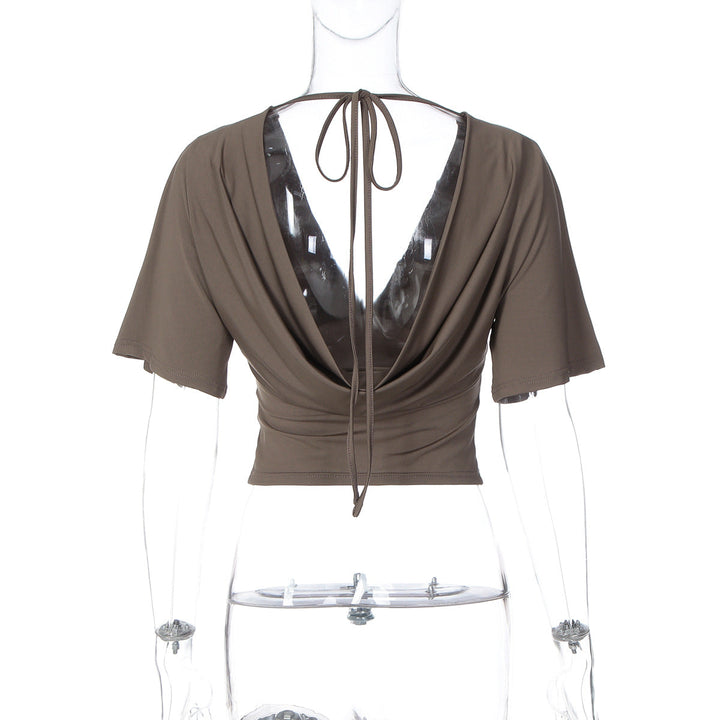 Short sleeve v neck self tie backless top