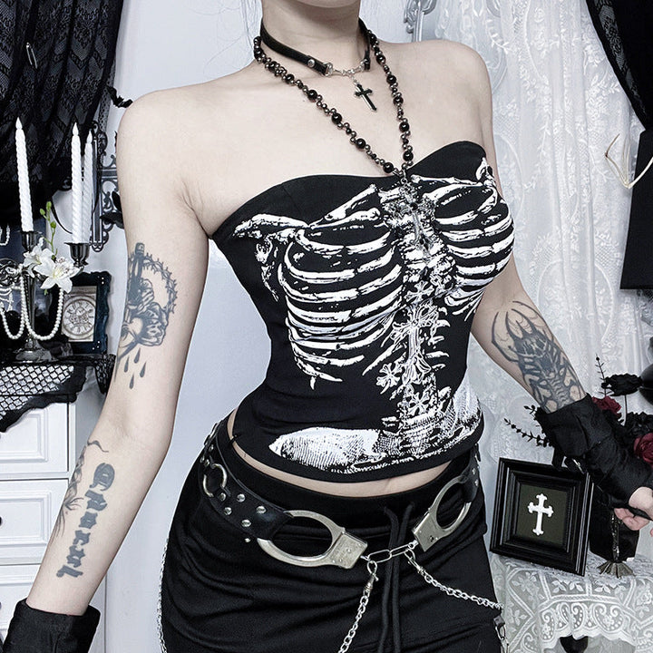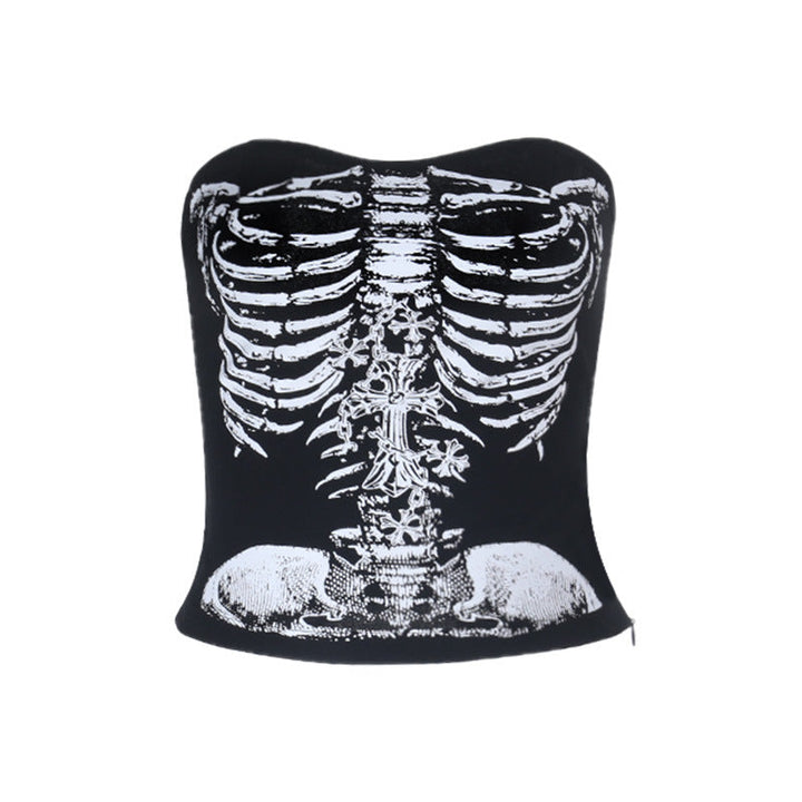 Skeleton print backless tube top