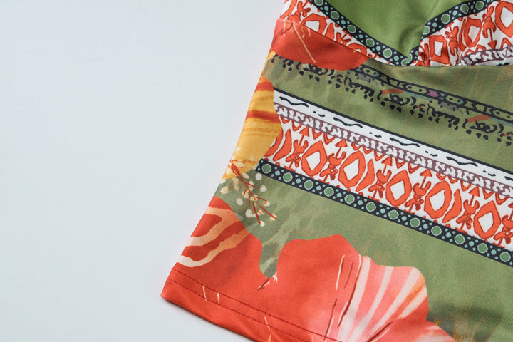 V neck self tie halter flower print maxi skirt set